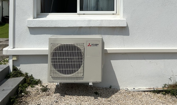 Pose d’une climatisation Mitsubishi, tri Split en gamme AP de puissance 2,5 kilo, dans les trois chambres d'une maison individuelle qui se situe à plein de Cuques.